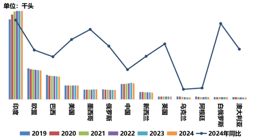 1、存栏:全球奶牛存栏小幅下降,欧盟存栏减少1.3%