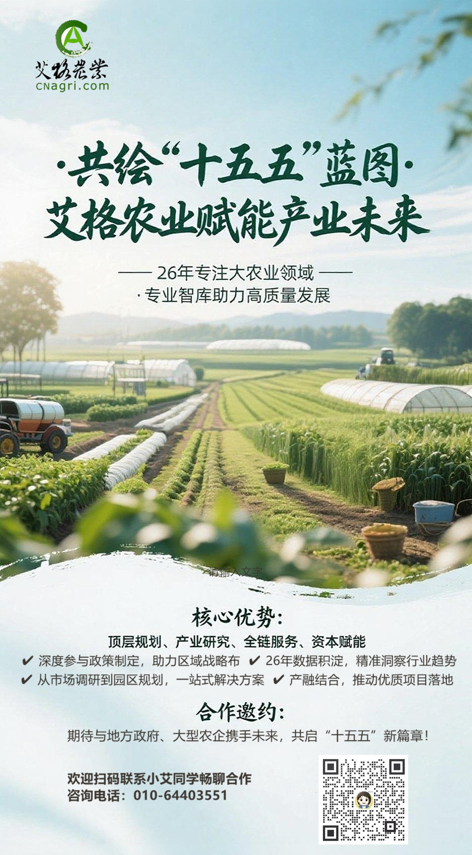 当前,各地正在紧锣密鼓地制定“十五五”规划,艾格农业作为专注于大农业泛食品领域的领先研究咨询和投资机构,凭借26年的深厚数据积累和专业经验,为政府、企业及各类机构提供包括顶层规划、产业研究、市场调研、战略咨询、园区规划以及投融资服务,期待与更多伙伴携手,共绘“十五五”蓝图。